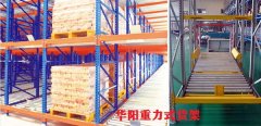重力式貨架是在貨架上配置輥筒裝置,坡度在3度左右,利用貨物的自重達到貨物的進取,托盤從進口自動滑行至另一端的取貨口,重力式貨架是一種先進先出的貨架。